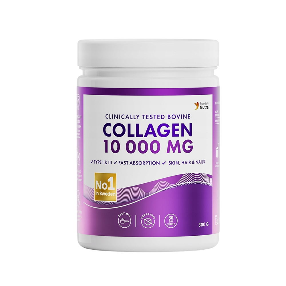 Η σκόνη κολλαγόνου της Swedish Nutra περιέχει υδρολυμένο κολλαγόνο τύπου Ι - που δίνει στο δέρμα σφριγηλότητα και κολλαγόνο τύπου III - που δίνει στους ιστούς την ελαστικότητά του. Με βάση έρευνες από κορυφαίους ερευνητές και πανεπιστήμια, μελέτες έχουν δείξει ότι η τακτική πρόσληψη υδρολυμένου κολλαγόνου Ι και ΙΙΙ μπορεί να υποστηρίξει πολλαπλά οφέλη: