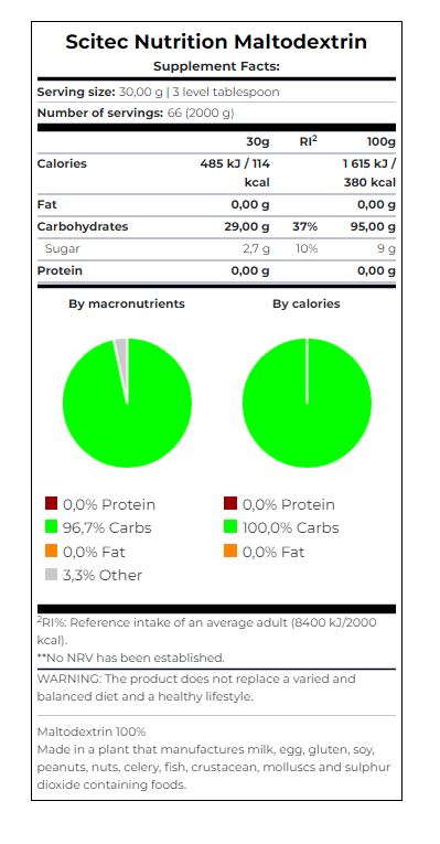 Εάν πρέπει να συμπληρώσετε την πρόσληψη υδατανθράκων ή εάν προπονείστε ή αγωνίζεστε, υπάρχει ένα συμπλήρωμα που μπορεί να σας ωφελήσει. Η μαλτοδεξτρίνη είναι ένας μη αρωματισμένος πολυσακχαρίτης που αποτελείται από μονάδες γλυκόζης. Επειδή η μαλτοδεξτρίνη αποτελείται μόνο από μόρια γλυκόζης, είναι μια ταχέως απορροφούμενη μορφή υδατάνθρακα. Συνιστάται για περιστασιακή χρήση, κυρίως μετά την άσκηση για την αναπλήρωση των αποθεμάτων γλυκογόνου ή κατά τη διάρκεια παρατεταμένης έντονης άσκησης κατά τη διάρκεια της προπόνησης. Η μαλτοδεξτρίνη είναι ένα προϊόν πολλαπλών χρήσεων που μπορεί να προσαρμοστεί ξεχωριστά για να ταιριάζει στο ρεπερτόριο αθλητικών συμπληρωμάτων οποιουδήποτε.