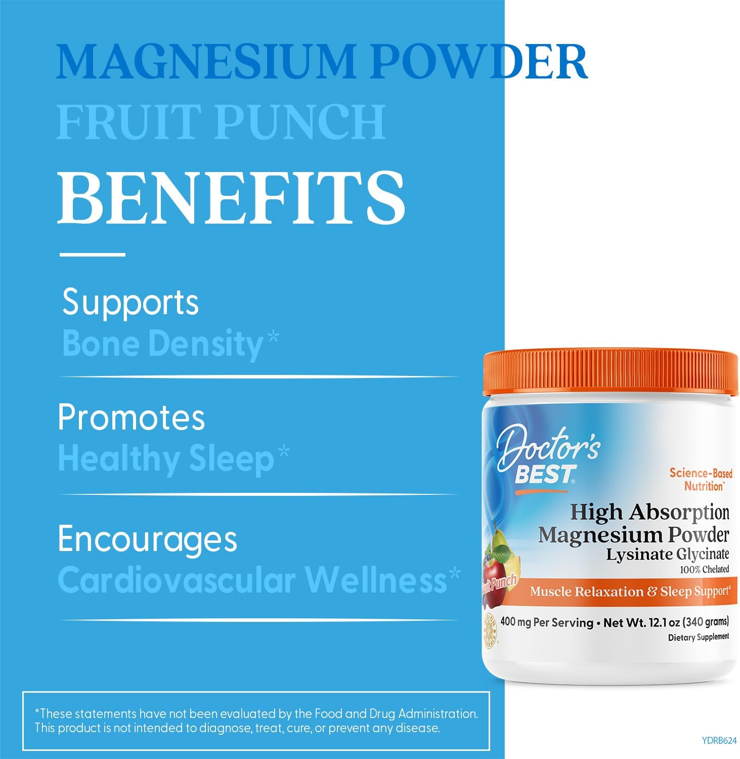 Doctor's Best High Absorption Magnesium Powder Fruit Punch 340g